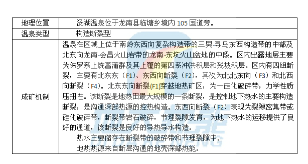 江西省龍南縣湯湖溫泉成礦機制![]() ![]() 江西省龍南縣湯湖溫泉區(qū)域地質(zhì)圖 |