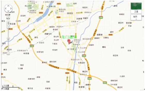 洛陽市位于河南省西部,位處亞歐大陸橋東段,橫跨黃河中游南北兩岸,“居天下之中”,素有“九州之腹地”之稱。地理位置東經(jīng)111°8’~112°59’,北緯33°35'~35°05'。
